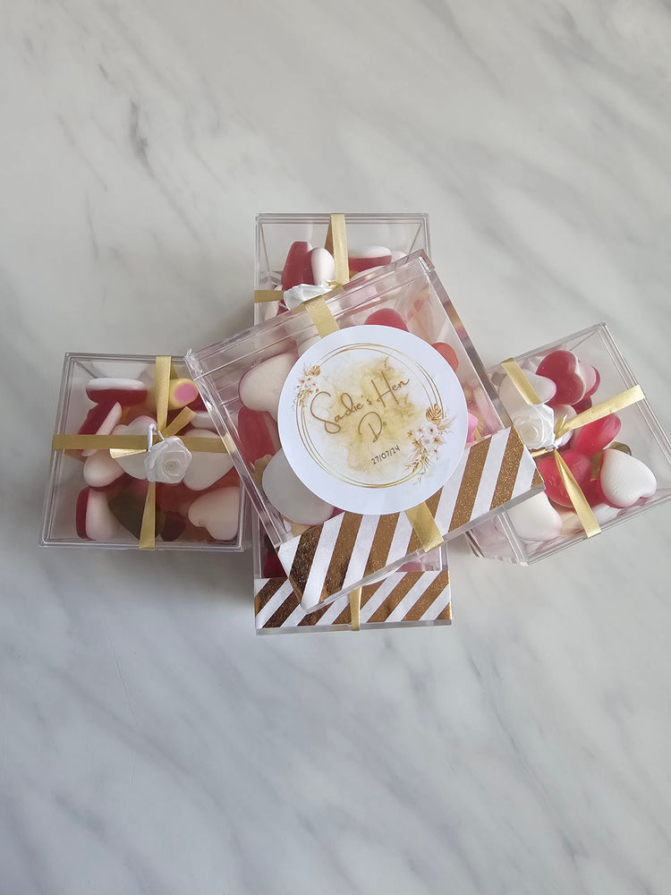 Elevate your Hen party with our Bridal Shower sweet boxes! These elegant boxes are perfect for treating your guests to delicious sweets while celebrating the bride-to-be. With our expertly crafted boxes, you can add a touch of sophistication and sweetness to your special occasion. With your choice of style and color, order now and make your event truly unforgettable.