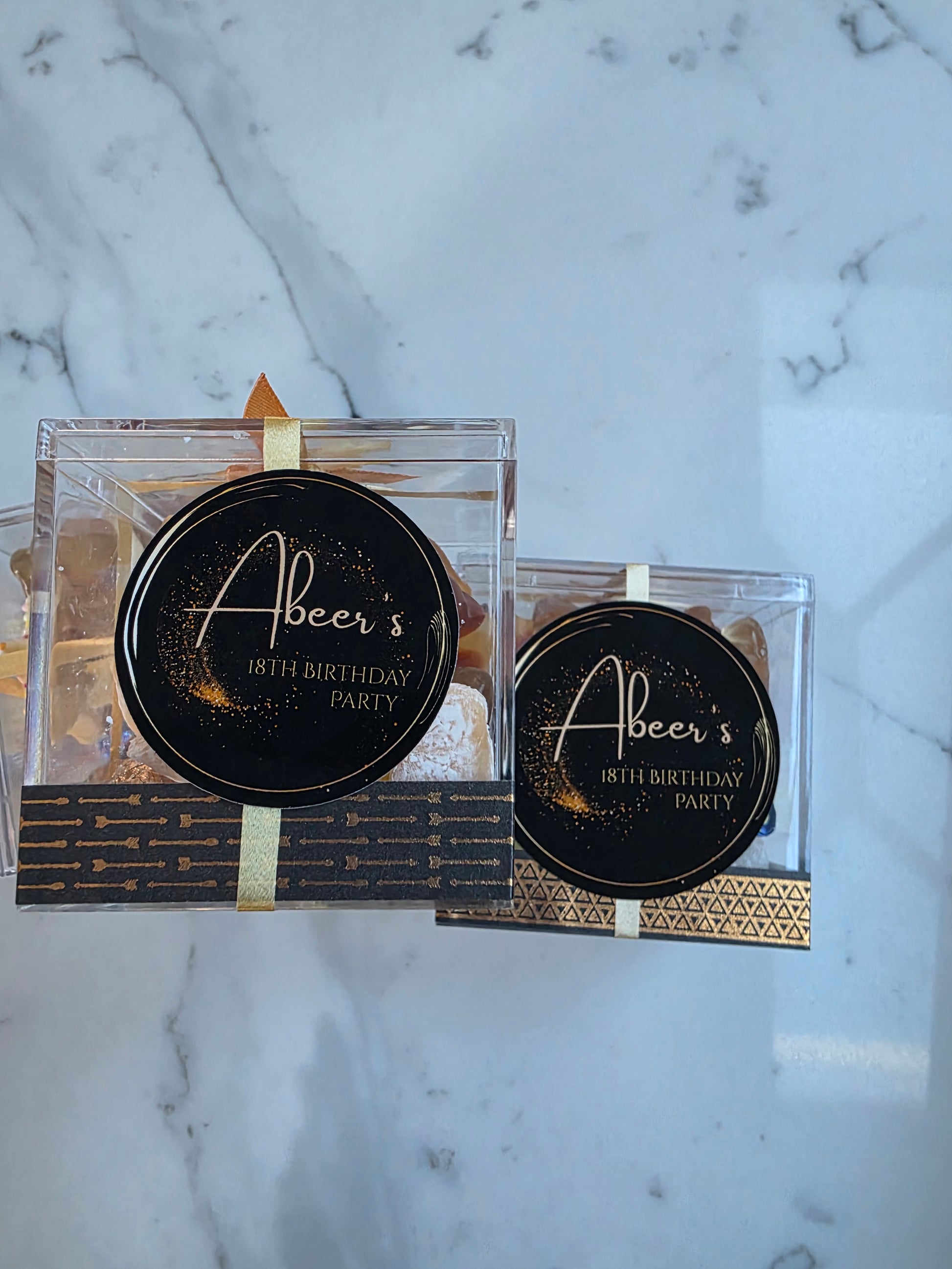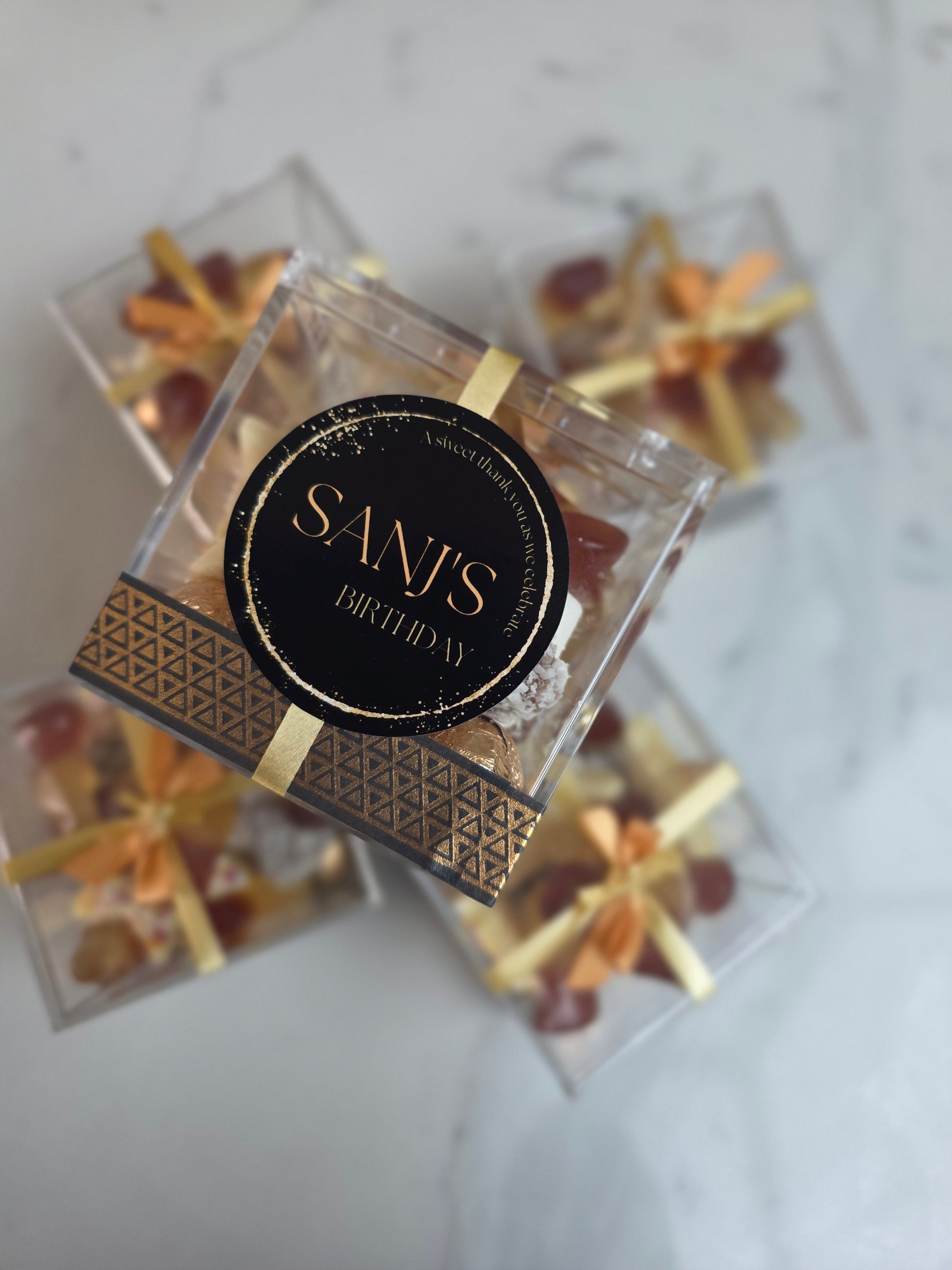Celebrate life's milestones with our Milestone Sweet Boxes the perfect party favour for all birthdays . Whether its your 21st or your big 50th, our sweet boxes are packed with delicious treatsto make the day even sweeter . Personalised to match your theme a fun and thoughtful way to thank your guests for celebrating with you. Choose from a variety of color themes and styles to create a unique and memorable celebration. Let us help you make your loved one's birthday extra special!